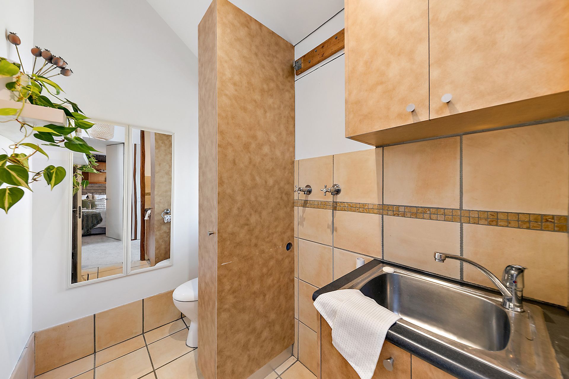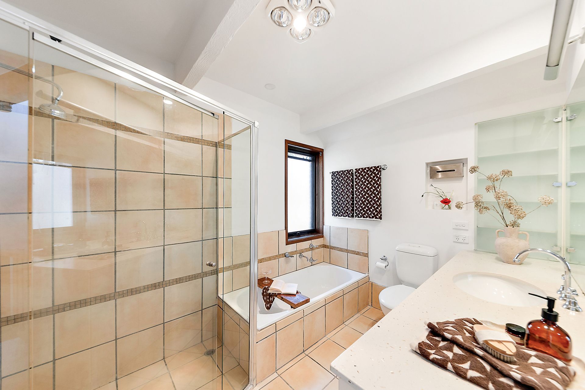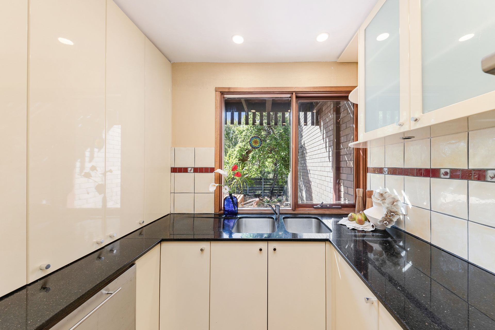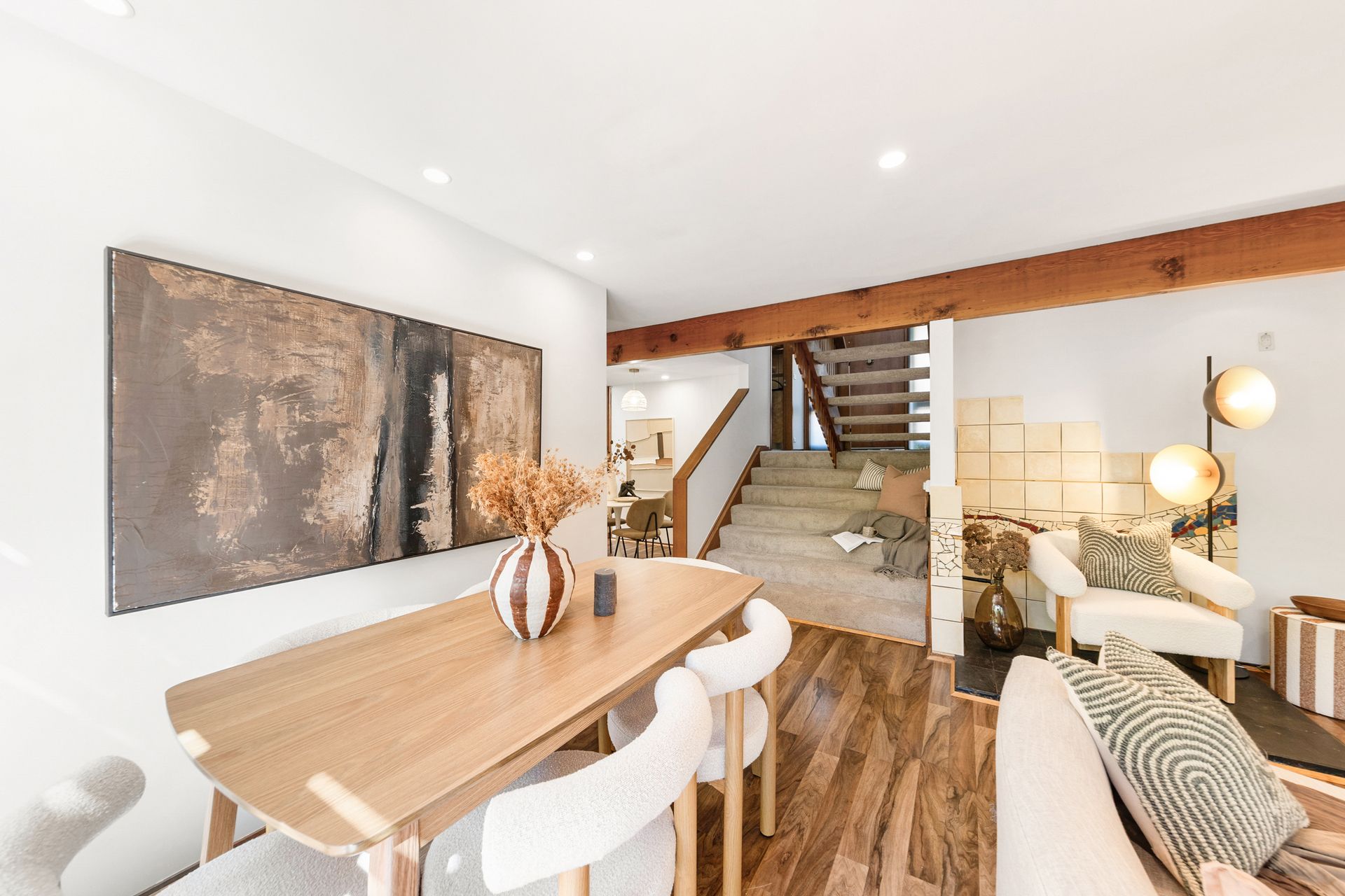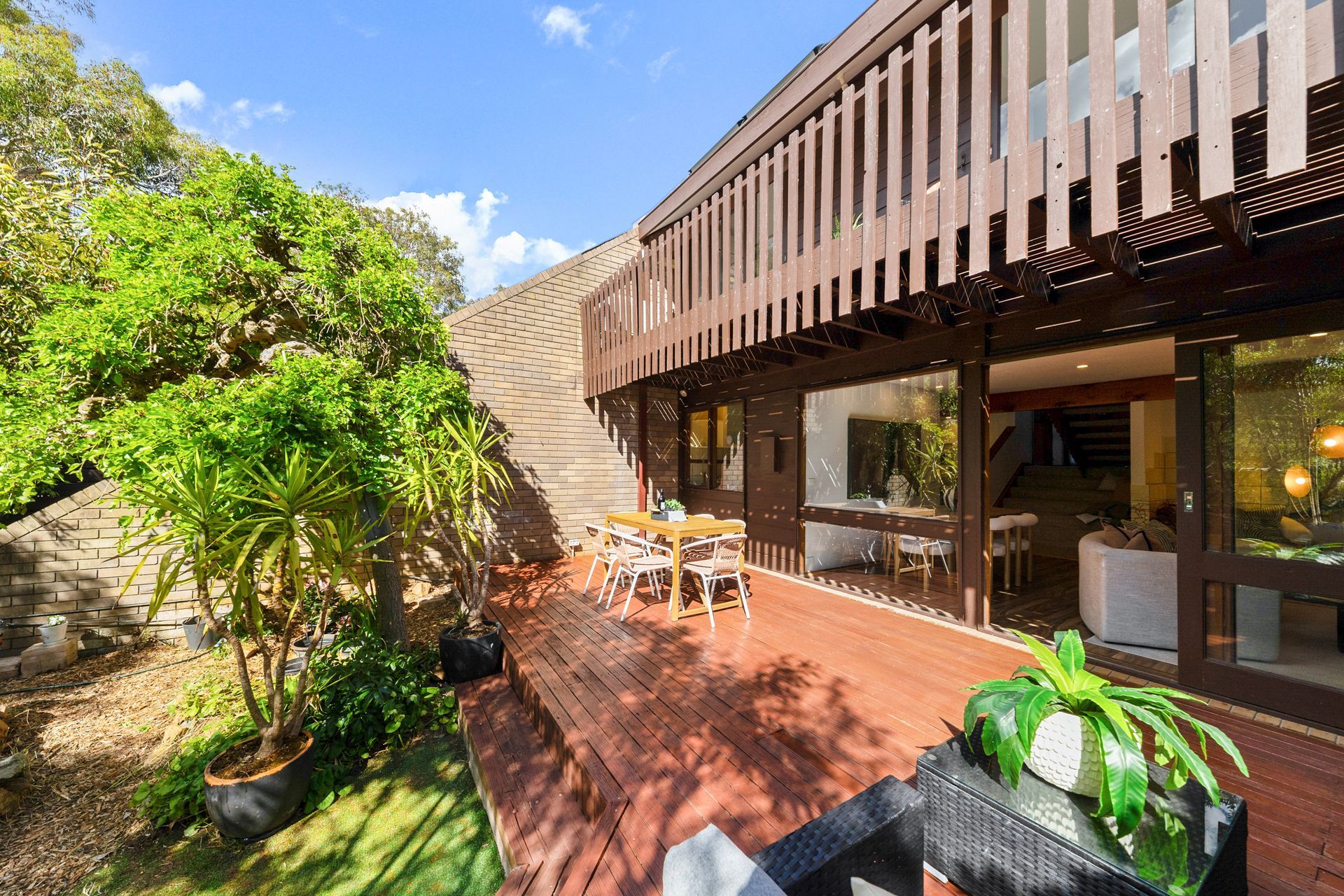 Nestled within Michael Dysart’s celebrated Wybalena Grove — a landmark example of 1970s Sydney Regional architecture — this townhouse sits gently among the eucalypts, its muted materials and angular rooflines blending seamlessly with the bush setting. Inside, the development’s signature openness shines through, with split levels, raked ceilings and interconnected spaces creating a calm, airy flow.