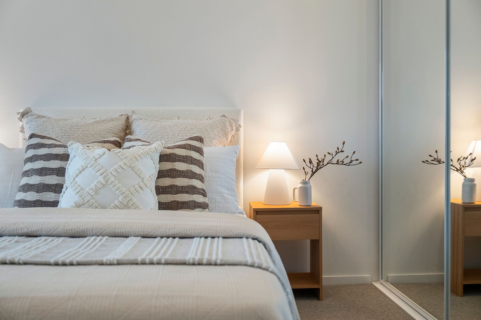 The layout includes a generously sized main bedroom with its own ensuite, plus a cosy guest bedroom and bathroom for visitors. Everyday living is made even simpler with smart features like an intercom system, dimmable lights, and an automated front door.